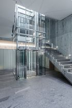 Im offenen Treppenhaus ist dieser elegante Glasschacht der Blickfang schlechthin. Jedes Detail ist exakt ausgearbeitet.