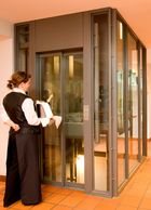 Durch die rechtwinklig angeordneten Zugänge können die Gebäudeteile in diesem historischen Schlosshotel mit unterschiedlichen Niveaus rollstuhlgängig erschlossen werden.
